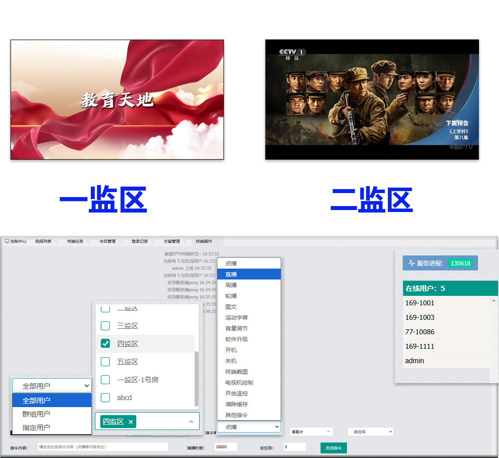 直播频道 教育视频 图片文档 滚动字幕 画面回传